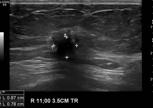 상기환자 건강검진상 이상소견을 내원하신 60대 여성분으로 우측 11시 방향 3.5cm