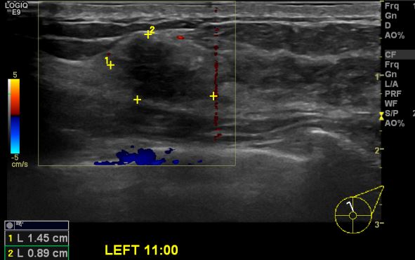 상기환자 양측유두 가려움 증상과 만져지는 멍울있어 내원하신 40대 여성분으로 본원 초음파상 좌측 11시 방향 만져지는 멍울 조직검사 시행하여 비정형유관증식증 관측되어
