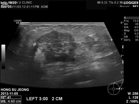 초음파검사결과 좌측유방에 4cm 가 넘는