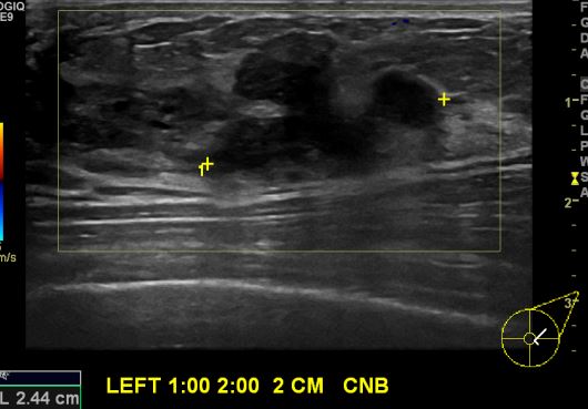 좌측 1시에서 2시 방향에서 2cm 떨어진 거리의 멍울 조직검사 시행하여 좌측 유관암