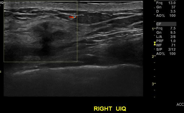 상기환자 건강검진상 이상소견으로 내원하신 50대 여성분으로 우측 유방 상외사분면에