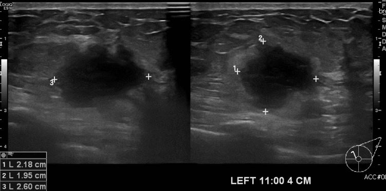 상기환자 좌측 만져지는 멍울과 통증으로 내원하신 60대 여성분으로 본원 초음파상