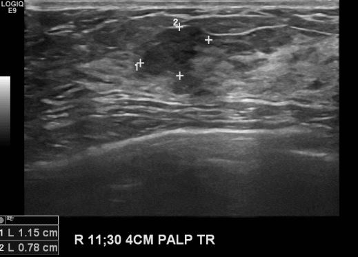상기환자 우측 유방 만져지는 멍울과 통증으로 내원하신 30대 여성분으로 본원 초음파상