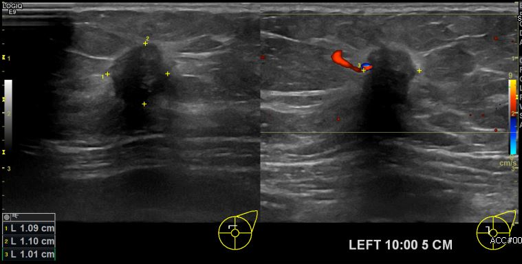 5cm 떨어진 거리의 멍울 조직검사 시행하여 좌측 침윤성 유관암 진단 되었습니다.