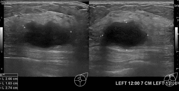 좌측유방에 만져지는 멍울로 내원하신 50대 여성분으로 좌측 12시 방향에서