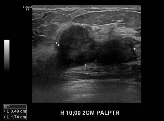 상기환자 우측 유방의 멍울로 내원하신 50대 여성분으로 우측 10시 방향에서 2cm