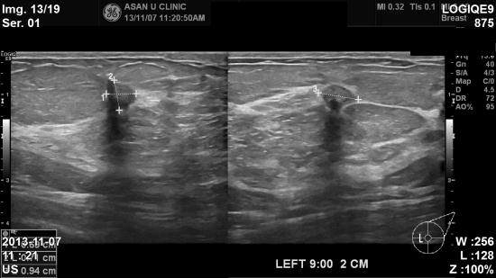 초음파검사결과 좌측유방에 새로운 종양이 생겨났는데