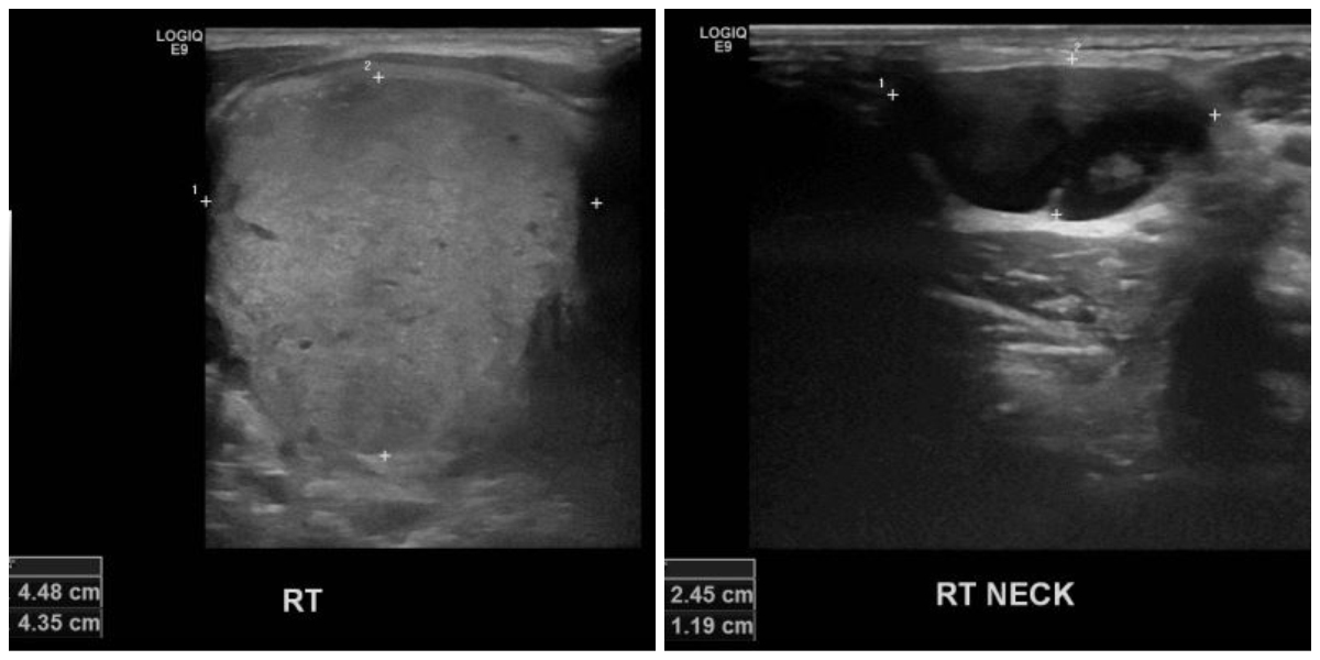상기환자 우측 목이 튀어나오고 통증있어 내원하신 10대 남성분으로 본원 초음파상 우측