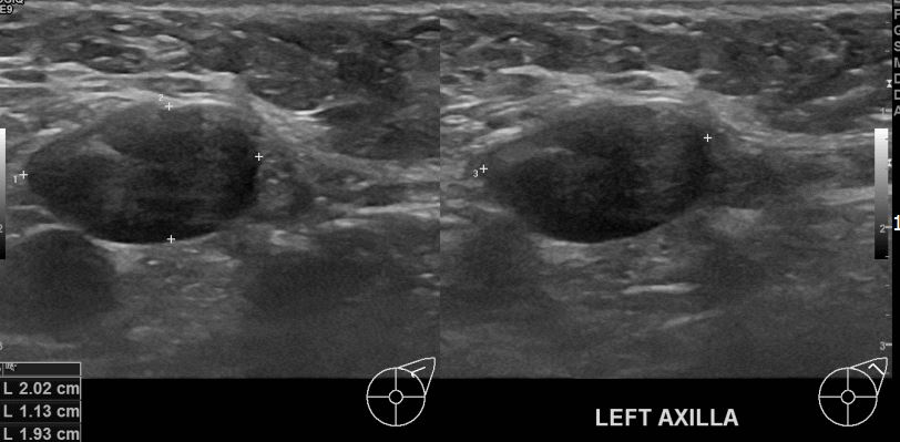 좌측겨드랑이에 만져지는 멍울있어 내원하신 50대 여성분으로 조직검사후