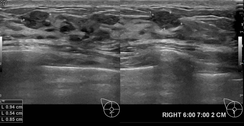 상기환자 3주전 부터 확인되는 유두분비물로 내원하신 30대 여성분으로 초음파검사후