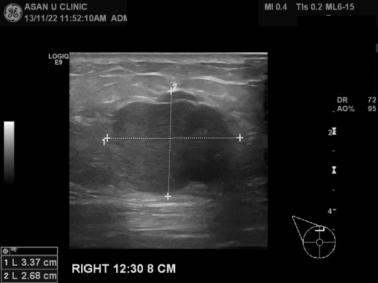 우측유방에 만져지는 몽우리를 주소로 내원하시어