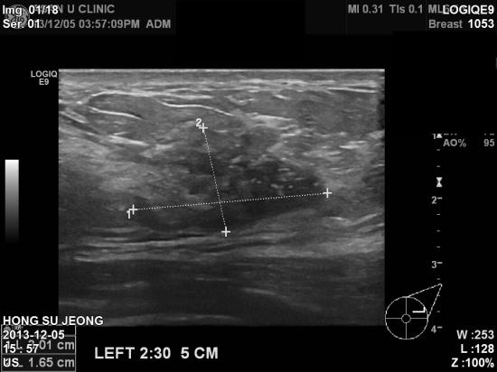 한달전부터 좌측유방의 피부가 함몰되어내원 하신 49세 여성분이십니다.