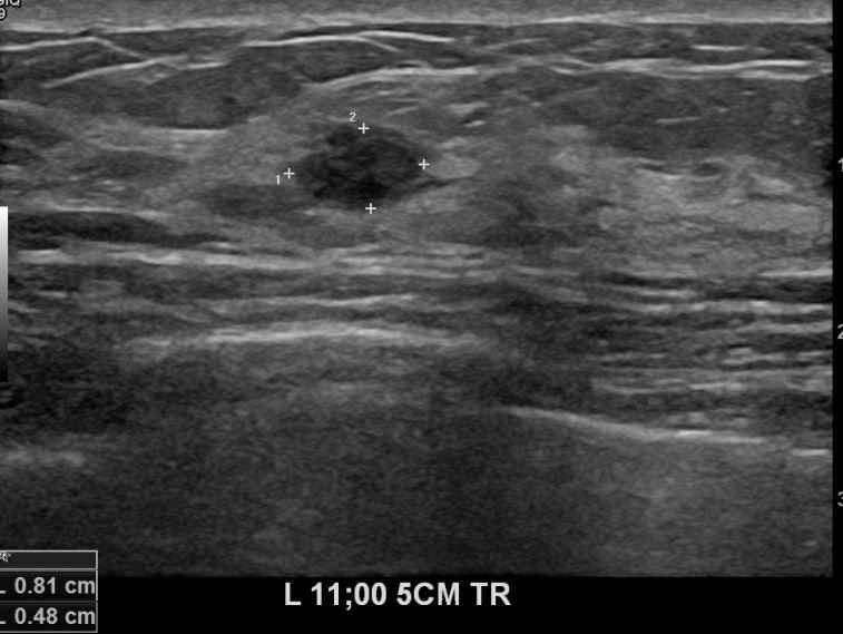 상기환자 외부검사상 이상소견으로 내원하신 40대여성으로 좌측 유방의 의심스러혹