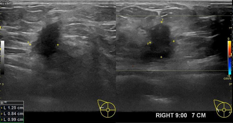 상기환자 외부검사상 이상소견으로 내원하신 40대여성으로 우측 유방의 의심스러혹