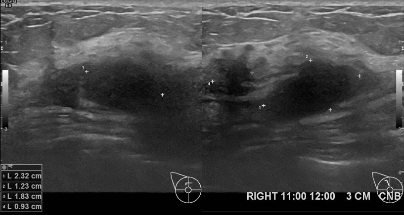 상기환자 외부검사상 이상소견으로 내원하신 50대여성으로 우측 유방의 의심스러혹