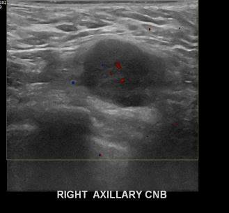 상기환자 외부검사상 이상소견으로 내원하신 40대여성으로 유방암으로 림프절 전이의심되어 조직검사시행해 유방암 진단되었습니다.