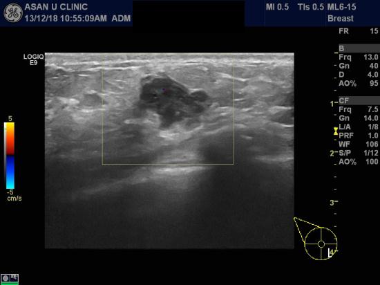 우측 유방에 하내측에 만져지는 몽우리 있어 내원하신 41세 여성분입니다.