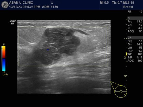 우측유방 외측에 갑자기 만져지는 혹이 있어 내원한 50세 여성분입니다.
