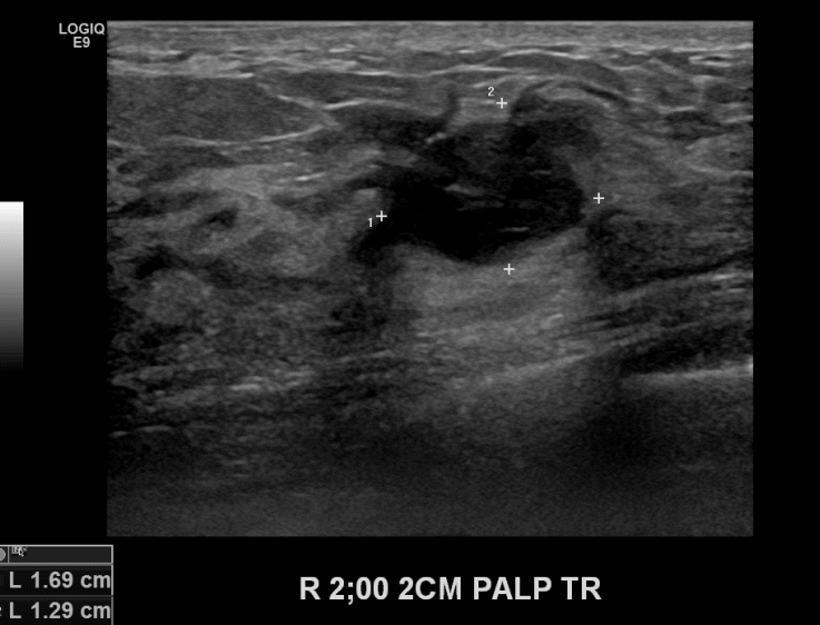 상기환자 우측유방의 만져지는 멍울있어 내원하신 50대 여성으로 유방초음파검사 이후