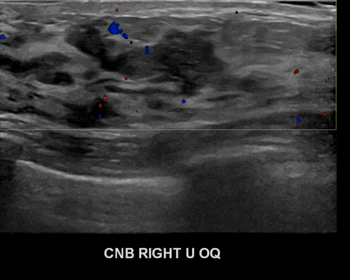 상기환자 우측유방에 딱딱한 멍울이만져져 내원하신 40대여성분으로 우측유방의 혹 조직검사시행후 유방암 진단되었습니다