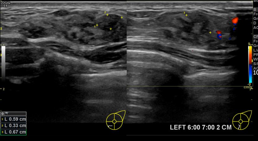 상기환자 좌측유방에 딱딱한 멍울이만져져 내원하신 30대여성분으로 좌측유방의 혹 조직검사시행후 유방암 진단되었습니다.