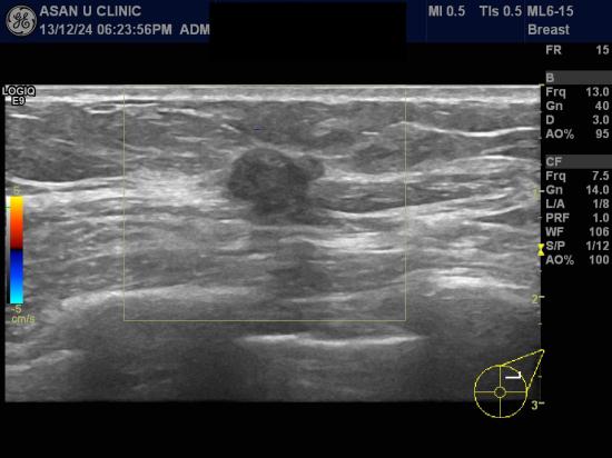 본원에서 실시한 유방초음파상 1.08 cm의 혹이 좌측유방에 있었고