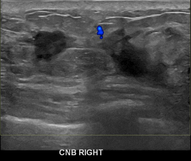 상기환자 건진상 이상소견으로 조직검사권유받고 내원하신 40대 여성분으로 우측유방멍울 조직검사시행후 유방암 진단되었습니다