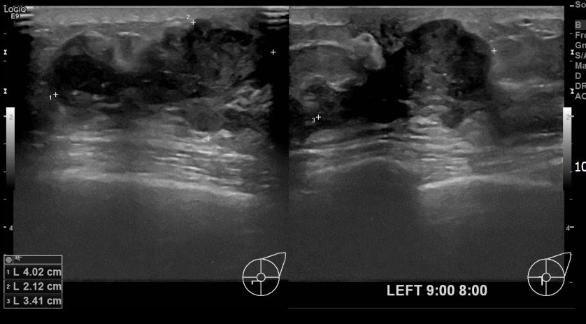 상기환자 좌측유방멍울만져지고 통증있어 내원하신 30대 여성분으로 유방암 의심혹 조직검사 시행 후 유방암 진단되었습니다.