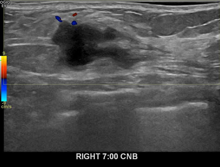 상기환자 건진상 이상소견으로 조직검사권유받고 내원하신 50대 여성분으로 우측유방멍울 조직검사시행후 유방암 진단되었습니다.