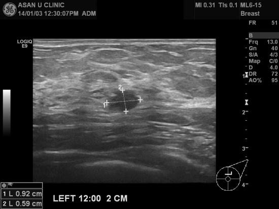 유방뿐 아니라 양측 액와부는 유방초음파시 필수로 점검해야하는 부위입니다.