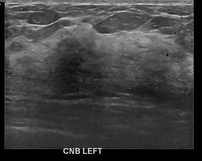 상기환자 건진상 이상소견으로 조직검사권유받고 내원하신 50대 여성분으로 좌측유방멍울  조직검사시행후 유방암 진단되었습니다.