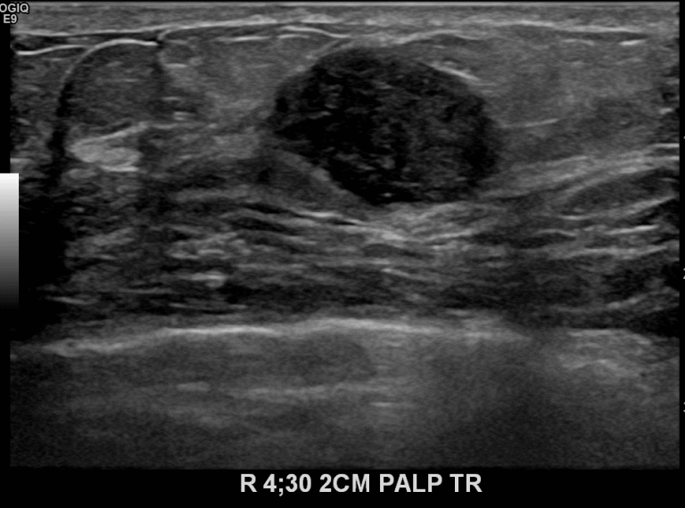 상기환자 4개월전부터 우측유방에 멍울잡혀 내원하신 분으로 초음파시행 후